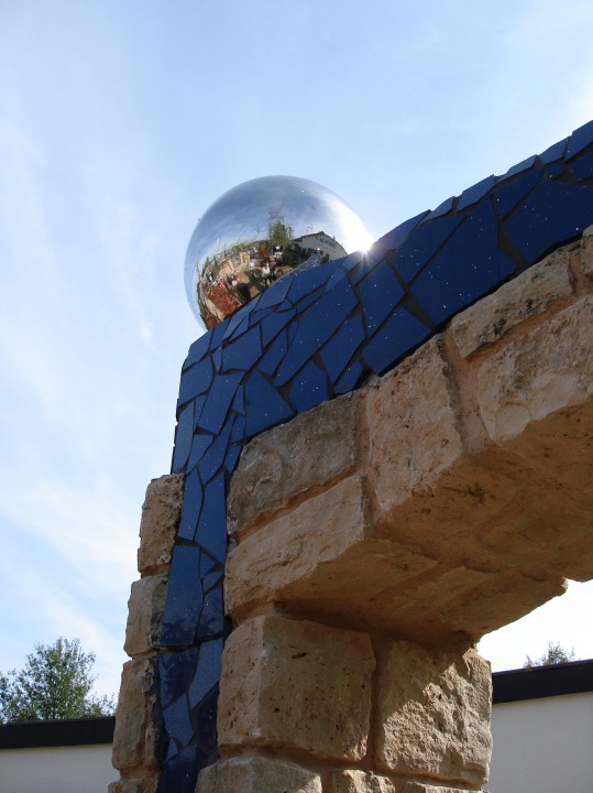 Der künstlerischen und individuellen Gestaltung sind keine Grenzen gesetzt, wie man hier am Beispiel des "Sternentores" sehen kann, der schmuckvollen Verbindung von Naturstein mit anderen Materialien.